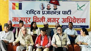 भक्तपुर, भदौ ७: राष्ट्रिय प्रजातन्त्र पार्टी मध्यपुर थिमी नगरपालिकाको नगर अधिवेसन सम्पन्न भएको छ। उम्मेदवार सर्वसम्मत हुन नसकेपछि चुनाब भएको हो। मंगलबार २ बजेदेखि भएको चुनाबमा दिउसो नै मतगणना सुरु भइ साँझ ६ बजे मतपरिणाम घोषणा भएको हो। जसमा ३२ मतले सुबास खड्कालाई पराजित गर्दै पन्चकृष्ण श्रेष्ठ बिजयी भएका छन। पन्चकृष्ण श्रेष्ठसहितको १६ सदस्यीय नगर समिति चयन गरेको छ।